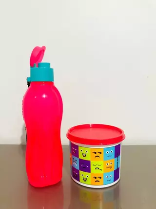 Kit Lancheira Tupperware Eco Tupper 500ml Neon + Redondinha Carinha